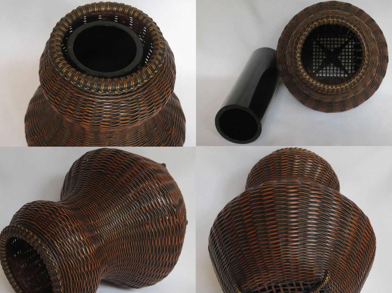 九月 特売品 福岡県 山の内春流作 煤竹千筋細工 籠花入 伝統工芸 花器 茶道具 税込
