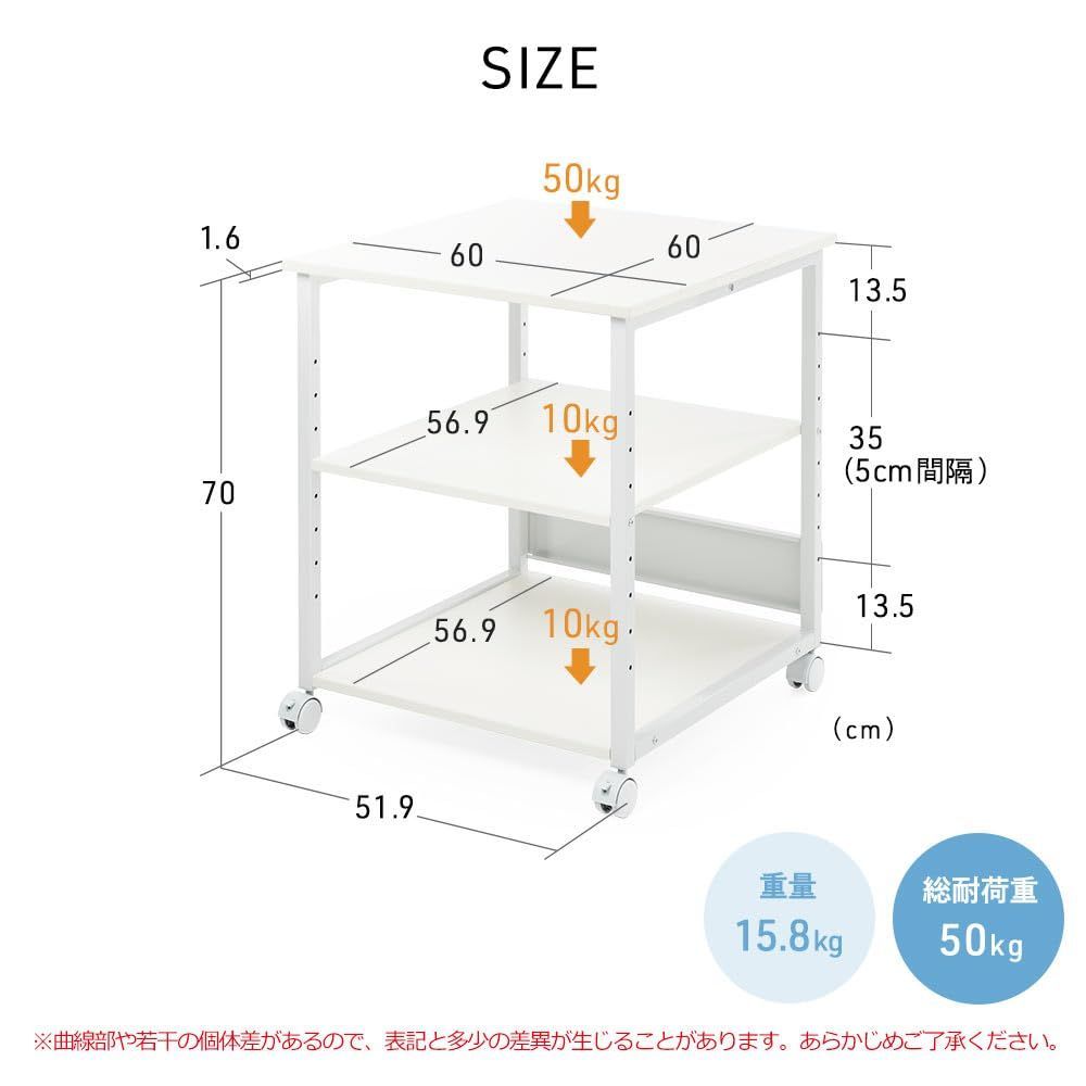 数量 イーサプライ プリンター台 3段 A3 大型 木製 幅60cm 奥行60cm 高さ70cm 耐荷重50kg キャスター付き ホワイト EEX-PTS03