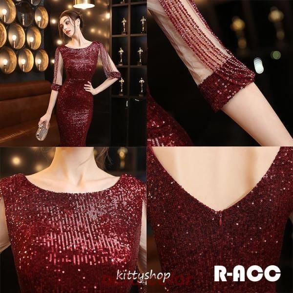 全 マーメイドドレス イブニングドレス スパンコール キラキラドレス 黒 ワイン赤 ゴールド 緑 ネイビー ロングドレス 発表会ドレス ビーズ パーティードレス