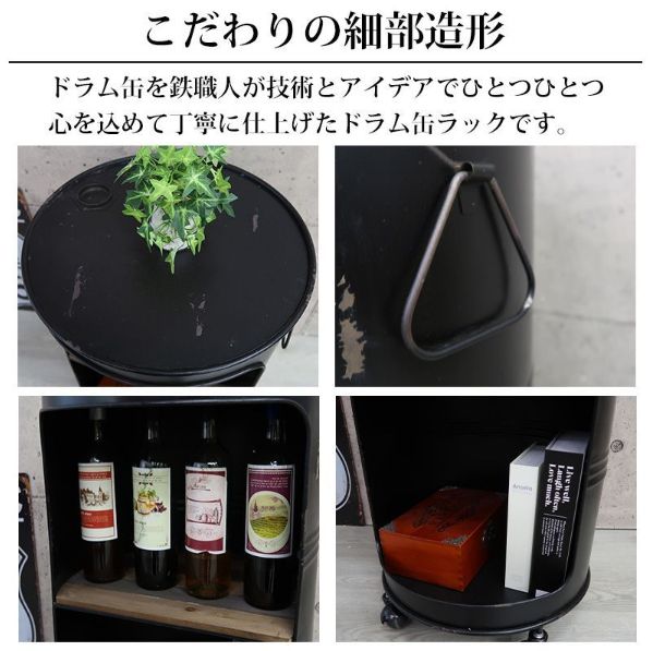 ワゴン キャスター付き ドラム缶 ラック 収納ラック 可動棚 テーブル サイドテーブル レトロ アメリカン 雑貨 収納ボックス キャビネット アメリカンレトロ アメリカ雑貨 インダストリアル ヴィンテージ
