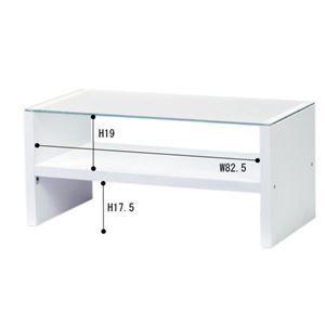 リビングテーブル 強化ガラス製 ガラス天板 棚収納付き HAB-621 WH ホワイト 白