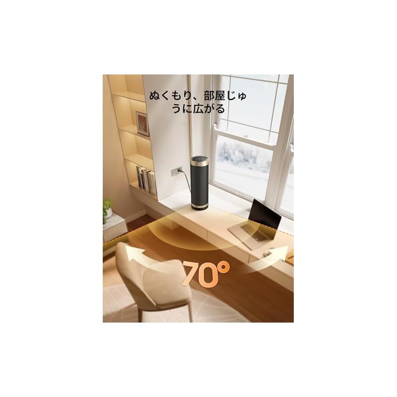 【静かな暖房】静かな図書館並みの37.5デシベル。特許取得のObliqueAirflow技術により、風の音を抑え、従来のヒーターより12%静かです。また、トラックボールシステムでスムーズかつ静かな首振りを実現。寒い冬の間も落ち着いて眠れますし、仕事の妨げにもなりません。