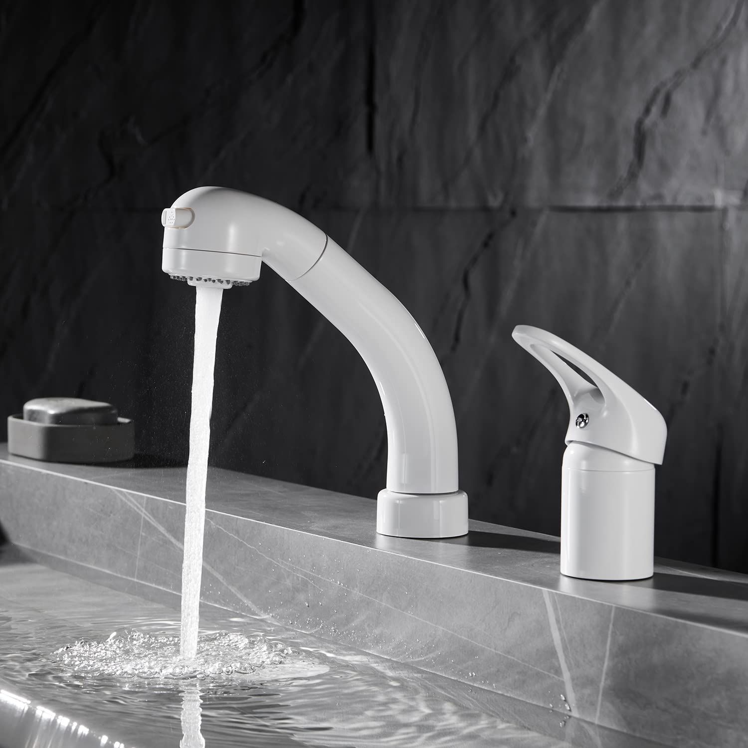 【50cm引出し水栓】 50cmまで引き出せる白の割水栓です。 あなたのキッチンがダブルシンクのデザインなら、この蛇口はあなたのために作られています.