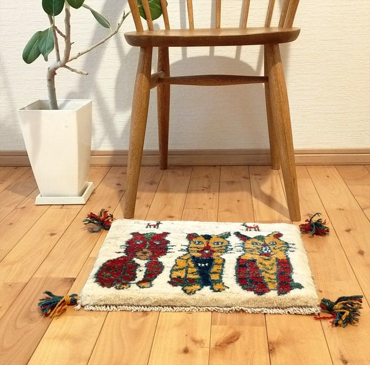 それぞれ異なる表情と、ギャッベならではの遊び心に満ちたデザインは、見るたびに新しい発見と癒やしを与えてくれます。