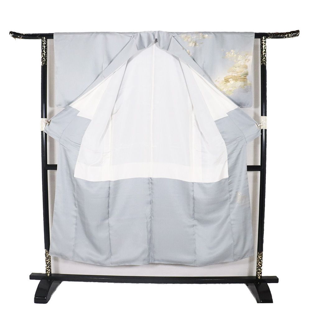 訪問着 袷 正絹 薄グレー 暈し 金箔 御所車 松竹梅 菊 紅葉 SSサイズ ki 31154 レディース フォーマル 30代 40代 50代 み