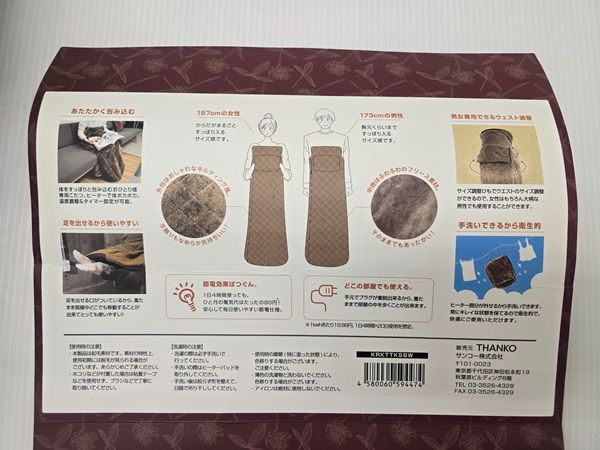 品 サンコー THANKO こたんぽ おひとりさま用着るこたつ 歩けるこたつ 360度しっかり保温 前面ヒーター内蔵 手洗い可 YR-19471