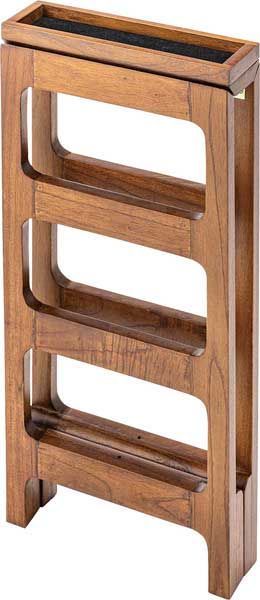 ディスプレイ,靴,スニーカー,3段,リーズナブル,木製,ウッド,木目,持ち運び,簡易,店舗,業務,コンパクト,ラダー型,梯子型,脚立型,階段状,カントリー,レトロ,玄関,飾り,下駄箱,シューズボックス,スタンド,おしゃれ,こだわり,個性的,トレイ付き,小物入れ付き,小物収納,茶色