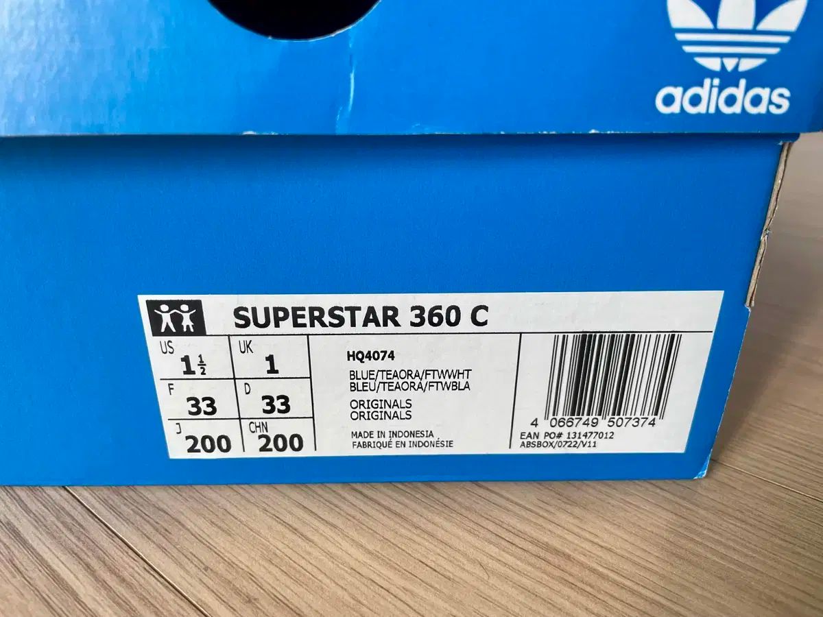 これはアディダススーパースター360ブルースリッポンです。スリッポンなので、子供でも着脱しやすいと思います。サイズは写真の箱を参考にしてください!ご不明な点がなければ、すぐに安心してお支払いいただけます!
