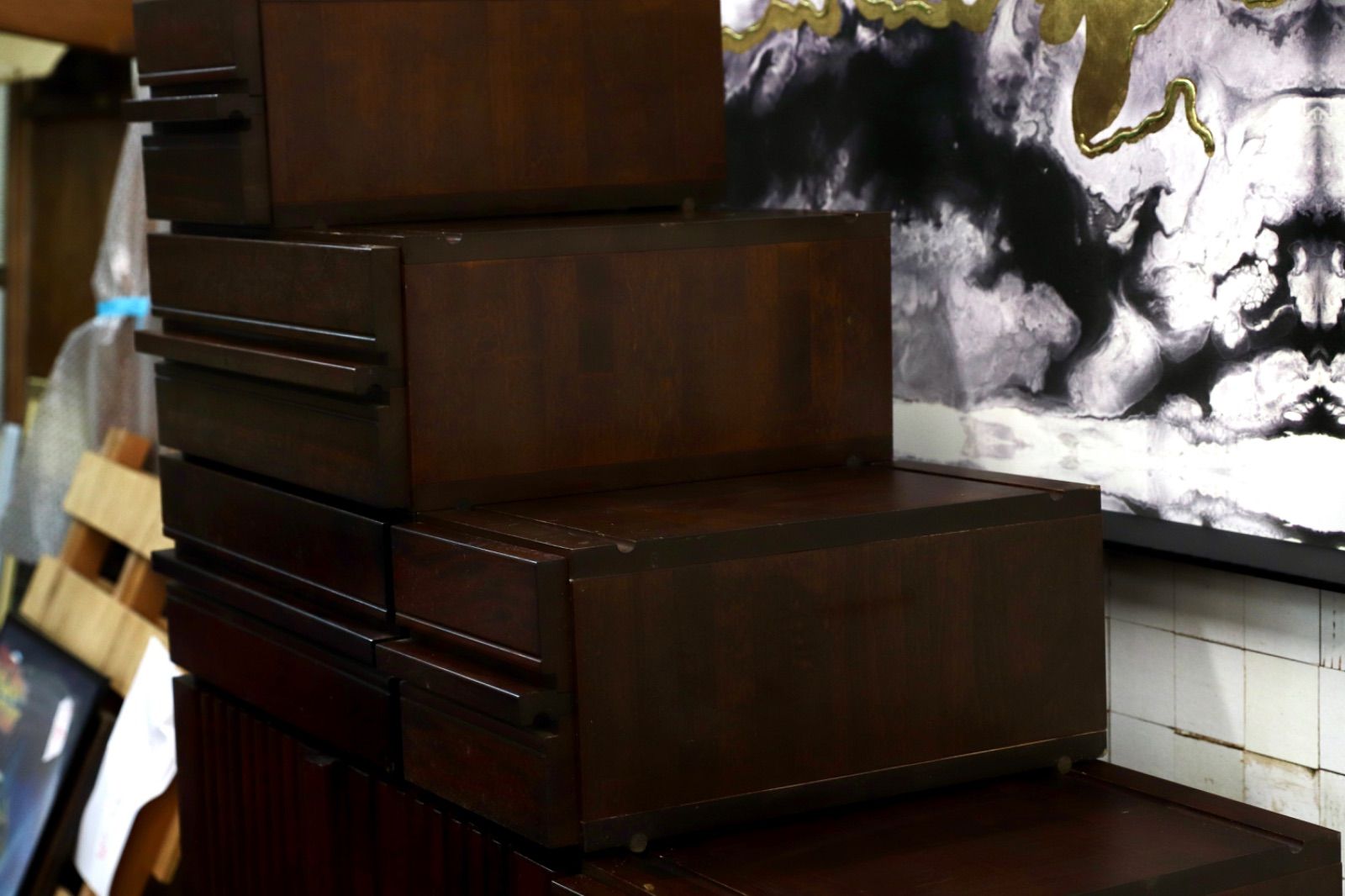 詳細は不明ですが、オーダー時は100万円以上でオーダーされたお品です。階段箪笥として完成した画像の状態ですが1番小さなサイズの棚が1つ余っておりますので付属いたします。
