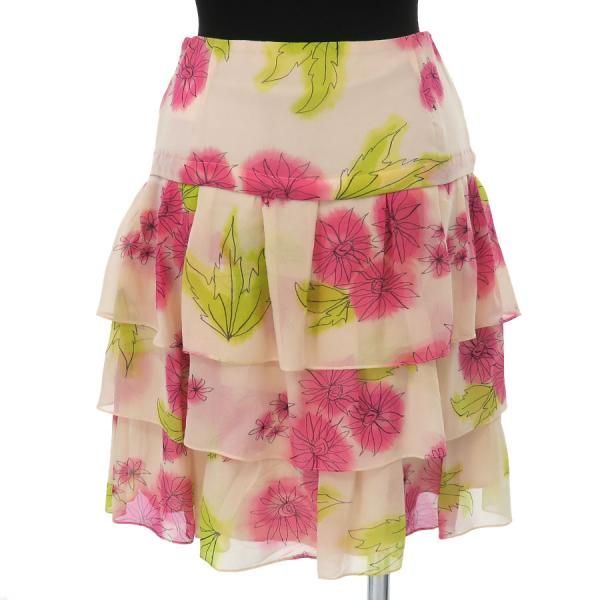 ■採寸#34着丈47cmW62cm■素材シルク100%裏地シルク100%C.Diorから可愛らしいピンク系のスカートが入荷しました。シルク素材の高級感あるお品物です。汚れ等は見受けられませんが裏地に着用によるシワ感が見られます。段々のフリルデザインがキュートです◎お気軽にお問い合わせください。
