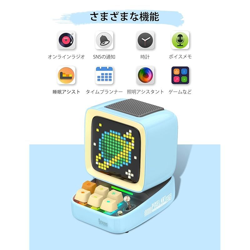 商品名:Divoom Ditoo Pro スピーカー Bluetooth HIFI音質 強化された低音 歌詞表示 最大12h再生 専用アプリ搭載 16*16LED RGB対応 自由カスタマイズ可 多機能20in1 レトロ 可愛い おしゃれ 2025高級ギフト対策(ブル