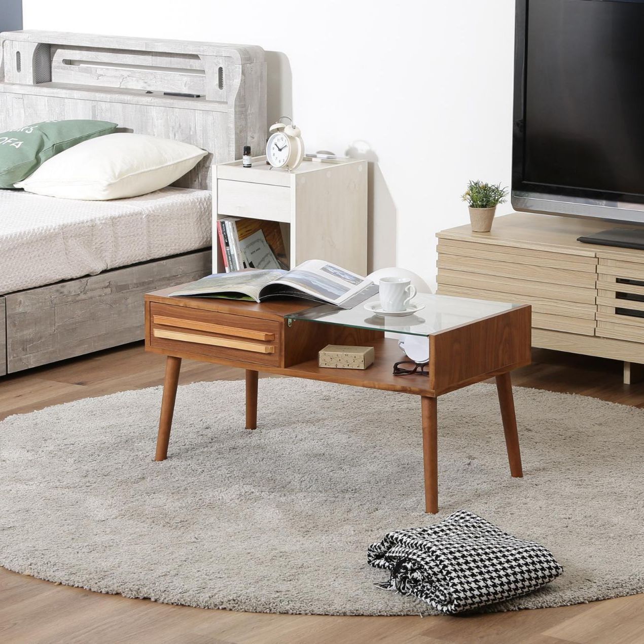 ガラス天板側は雑誌やちょっとした小物雑貨などをディスプレイすることができます。