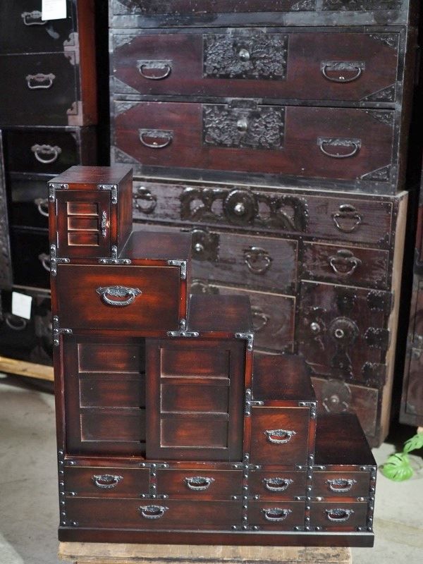 アンティーク調 小型階段箪笥 レトロ飾棚 現代モノ 古録展 品番S 10793