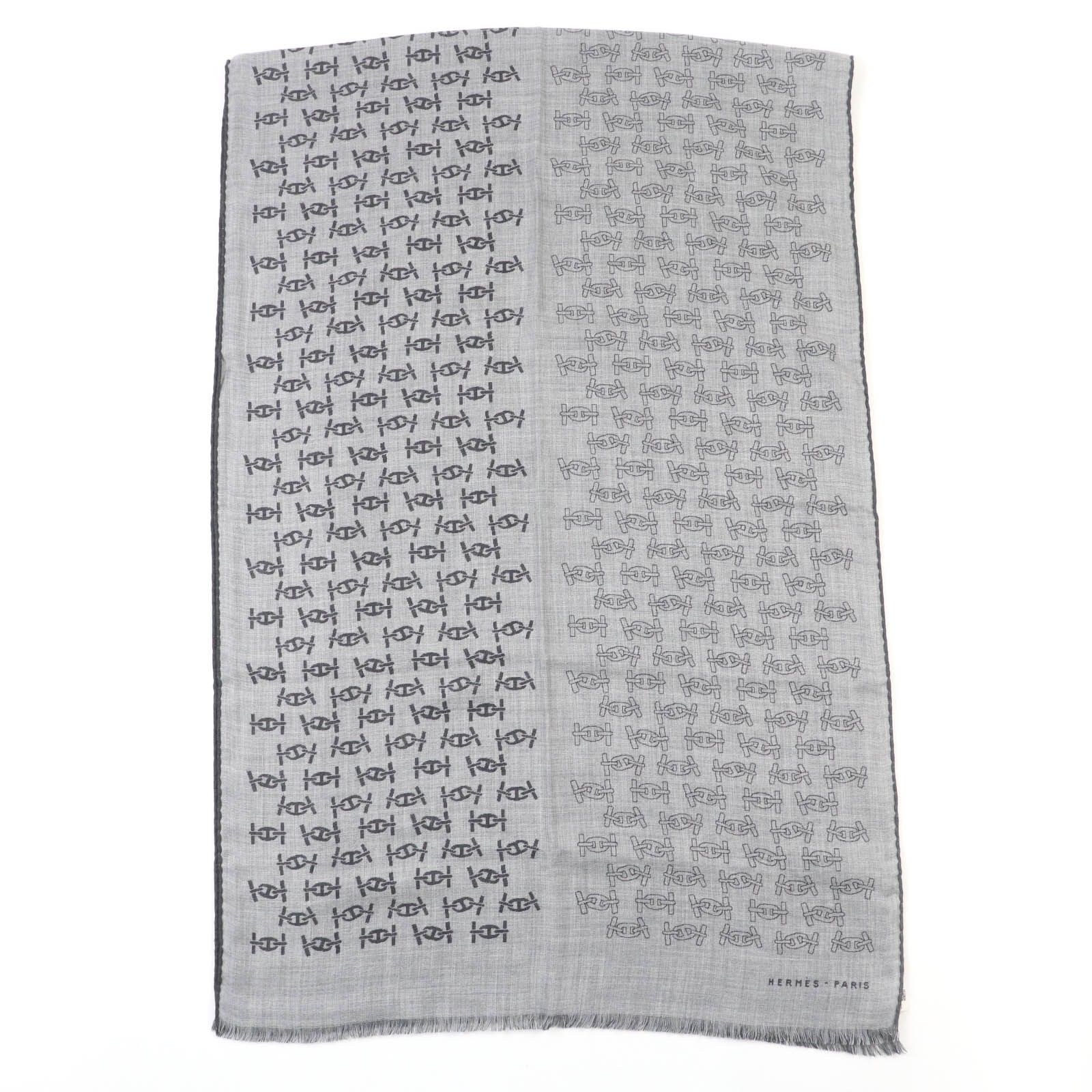 HERMES エルメス マイヨン リズム カシミヤ シルク CENDRE ANTHRACIT フリンジ付 大判ショール マフラー き メンズ