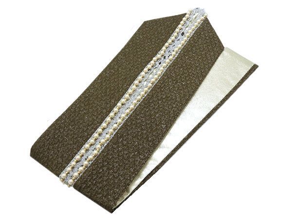 着物美人 送料込み! 重ね襟 パールレース オリーブ 銀 m339279E1