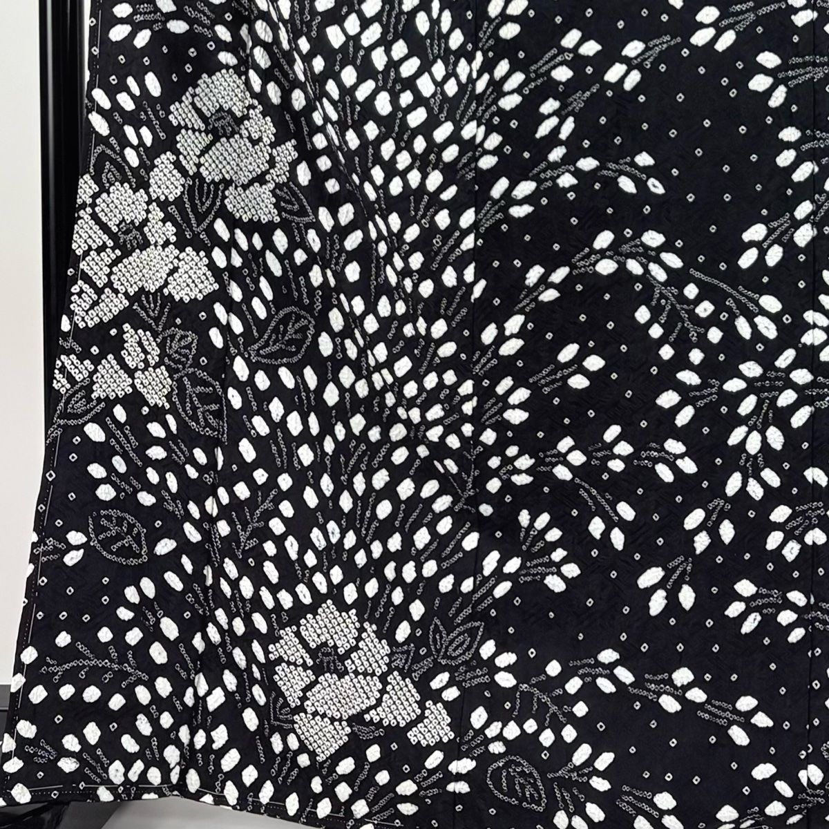 訪問着 身丈167.5 cm 裄丈67 M 袷 草花 絞り 黒 正絹 秀品