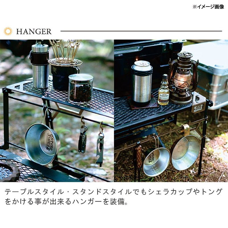 ●テーブルスタイル、スタンドスタイルでもシェラカップやトングをかけることが出来るハンガーを装備。