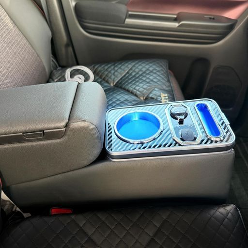 【Type-CとQC3.0USB充電対応】スペーシアおよびスペーシアカスタム専用のアームレストには、Type-CポートとQC3.0USBが搭載されており、より便利にご利用いただけます。さらに、シガーソケットも装備されており、電源を入れるとボタンを押すだけで車内を明るく照らすことができます。