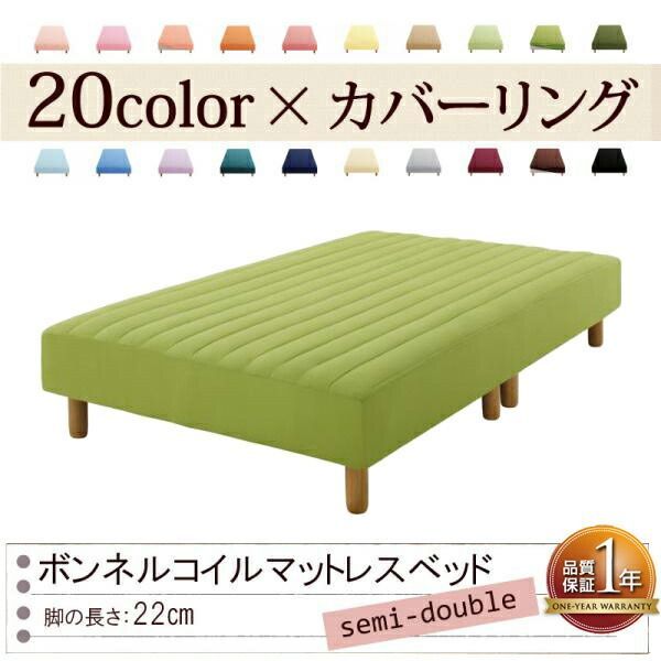 色 寝心地が選べる! カバーリングボンネルコイルマットレスベッド 脚22 cm セミダブル モスグリーン