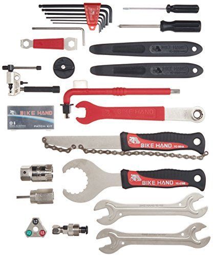 【セット内容】パンク修理セット、ミニマイナスドライバー、フリーホイルリムーバー、プラス/マイナスドライバー、フリーホイルチューナー、T-25レンチ・クランク取り付け工具、チェーン切・BBレンチ(シマノホローテック用)、スポークレンチ(0.127/0.130/0.136")、カートリッジBBツール、15mmペダルレンチ、コッタレスクランク工具、13X14X15X16両口ハブスパナ、プラタイヤレバー(ロング)、2/2.5/3/4/5/6mmアーレンキセット、8mmアーレンキ(1/2ソケットアダプター付)