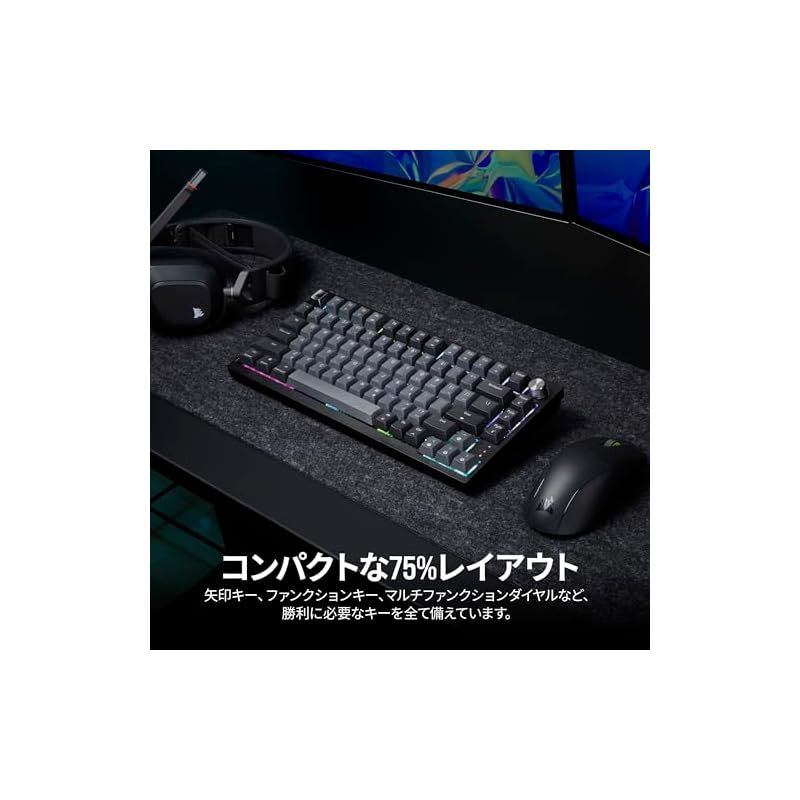 商品名:CORSAIR K65 PLUS ワイヤレスゲーミングキーボード 75%キーボード 82キー 自社独自リニアスイッチCORSAIR Red採用 ホットスワップ可能 メディアダイヤル付き 日本語配列 CH-91D401L-JP