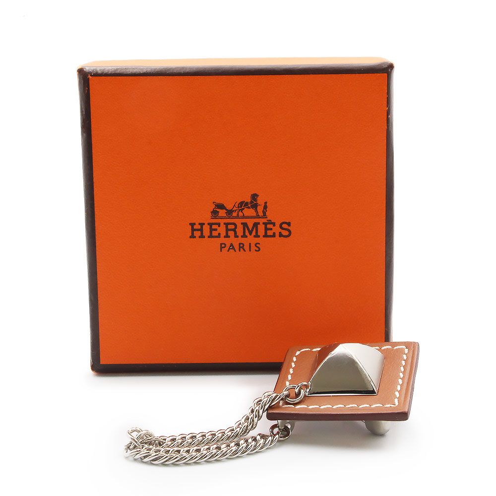 エルメス グルメット エケストル ブローチ ヴォースイフト レザー ゴールド ブラウン シルバー金具 HERMES