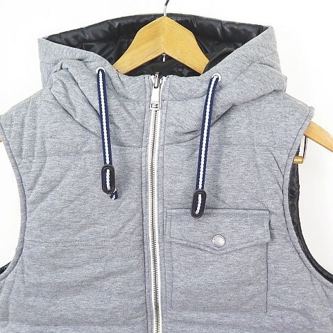 バーバリーブラックレーベル BLACK LABEL リバーシブル 中綿ベスト フーディ スウエット ナイロン 2 グレー ブラック D 1 P 12-812-06 sa 6851