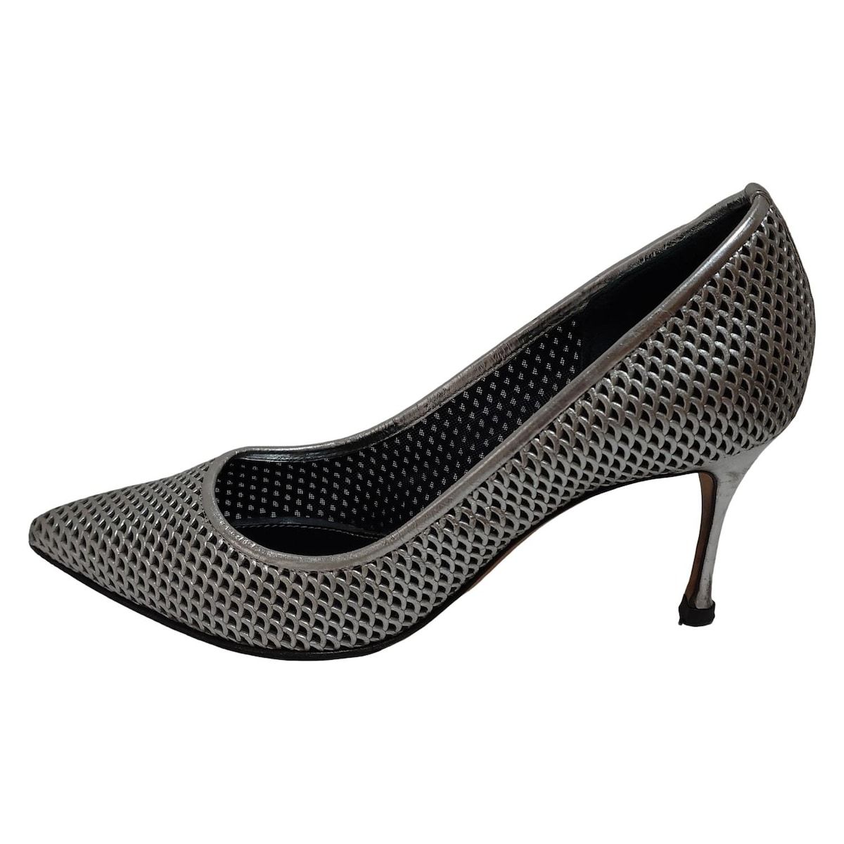 sergio rossi セルジオロッシ パンプス 37 レディース - シルバー メッシュ パンチング アウトソール張替済 レザー