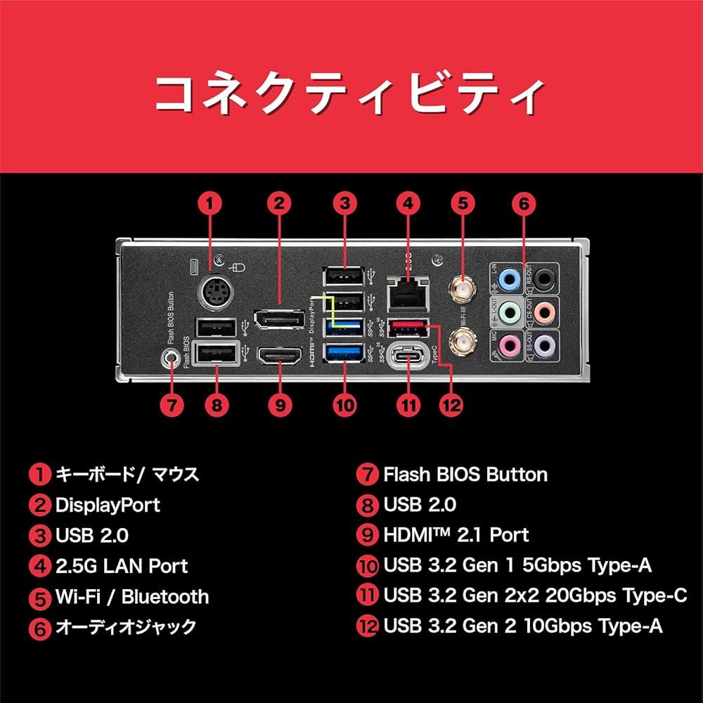 ●対応メモリ:DDR5 4800~7200+ XMP3.0対応