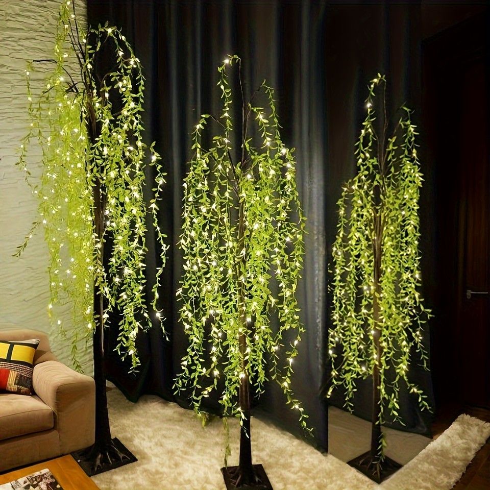 幻想的な光で空間を彩る、LEDライト付き人工柳の木