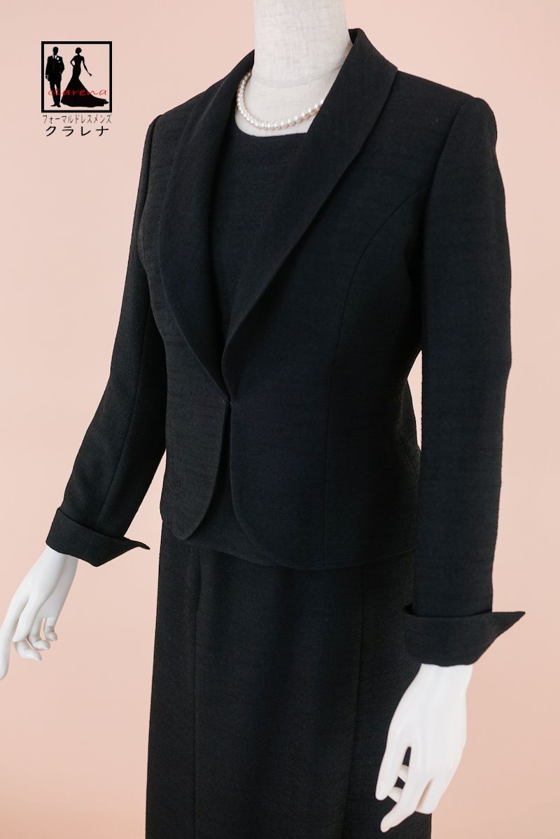 黒のジャケットとワンピースがセットになったブラックフォーマルのアンサンブル。