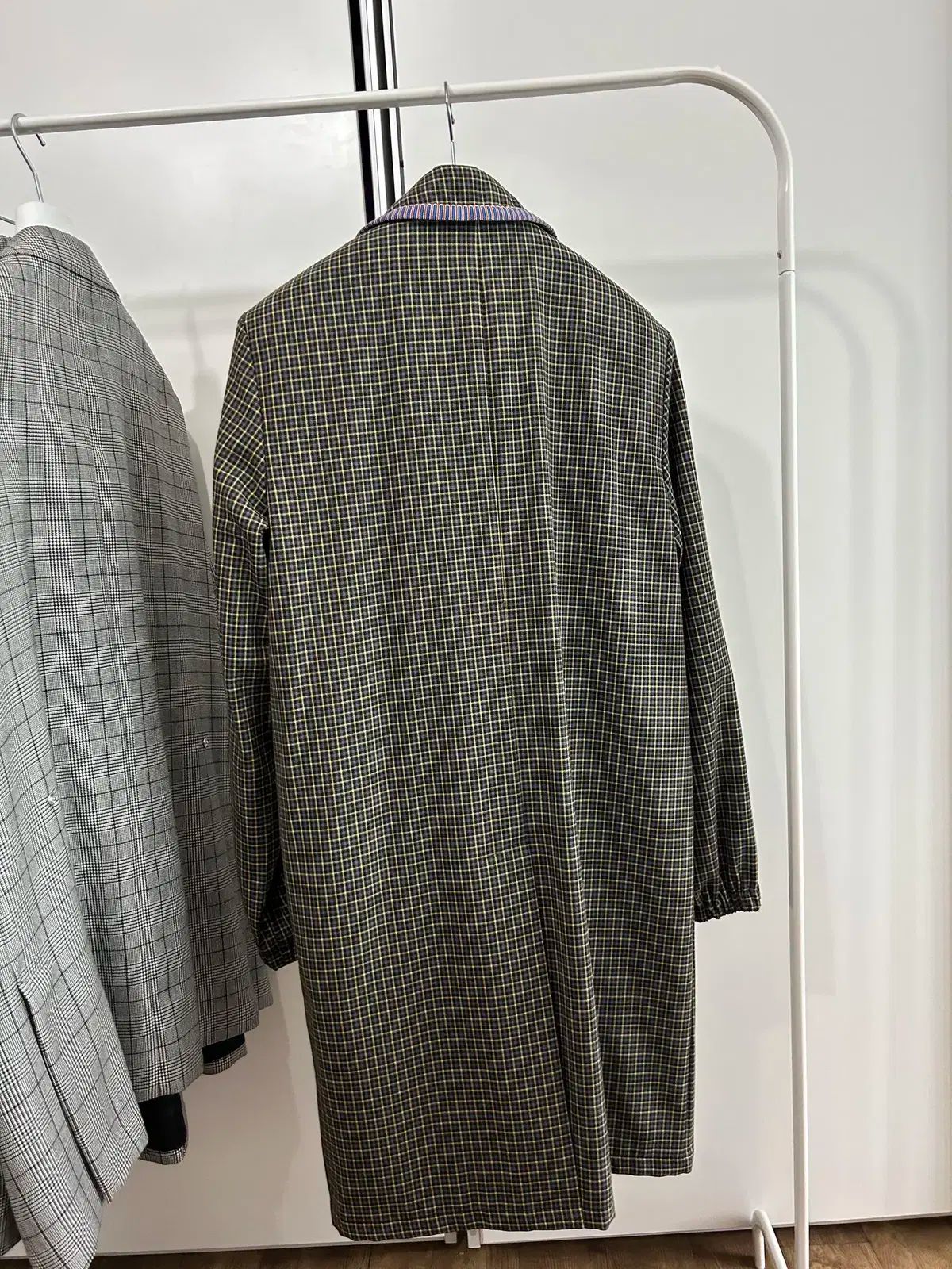 -説明:特別に加工されたウールチェック素材とアウトドアのディテールが施されたプラダコレクションのアイテム。