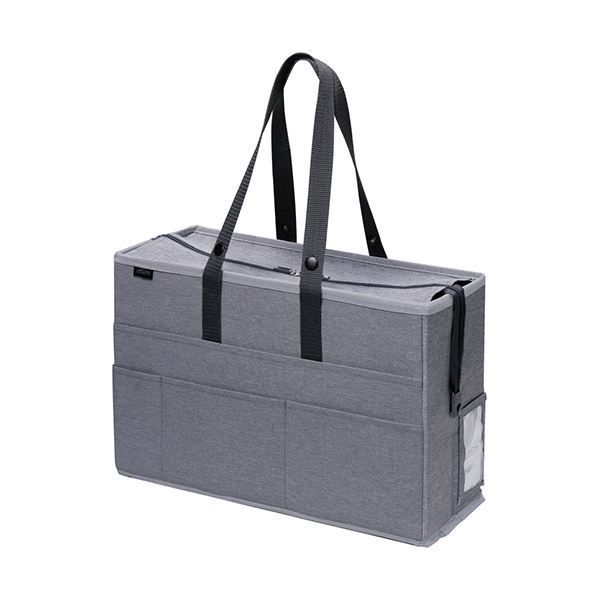 ●外出時もファスナーを閉めると中身を隠せて安心のグレーのキャビネットバッグです。