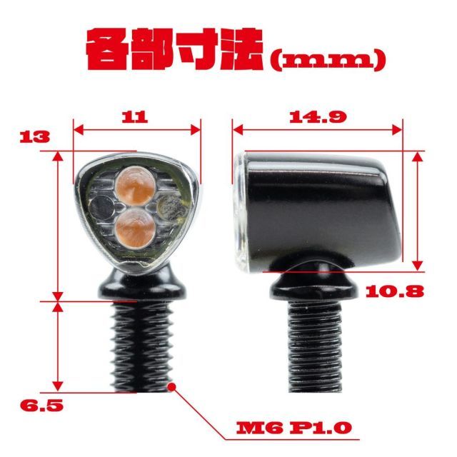 キジマ Kijima バイクパーツ Nanoウインカーランプ タイプ2 トライアングルスタイル シングル 12 V 1.35 W 入り アンバー 219-5199 ブラックボディ―