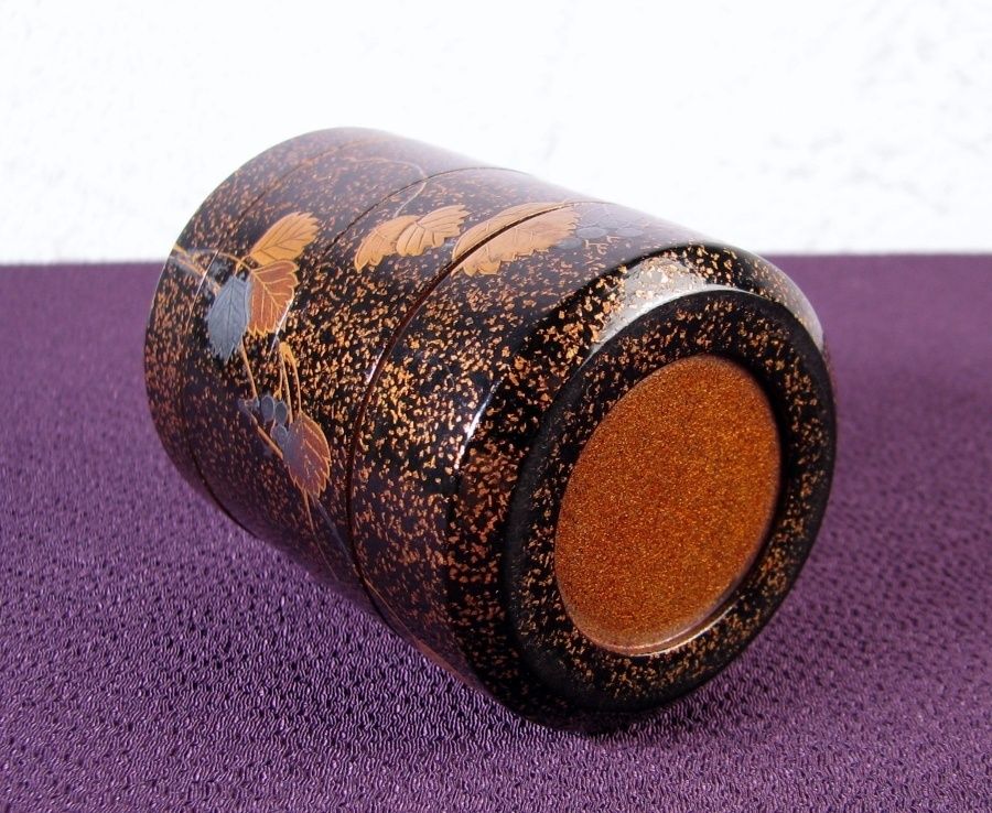 時代 蒔絵蔦文化粧道具 総梨地 高さ 7 cm 桐 明治~大正 25 k 007
