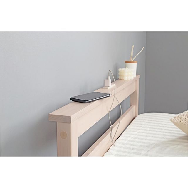 コンセントが便利な宮棚付き、床面高さ調節可能な天然木すのこベッド