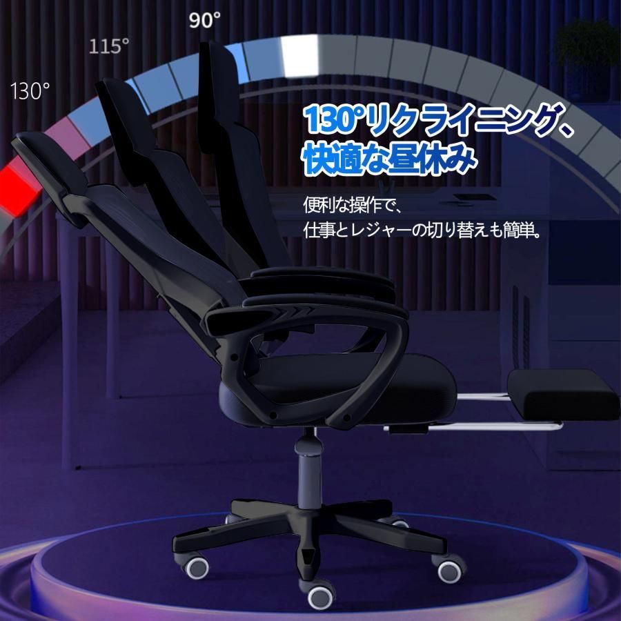 オフィスチェア メッシュ オットマン ロッキング リクライニング ブラック 360度回転 在宅勤務 高反発座面 デスクチェア ハイバック