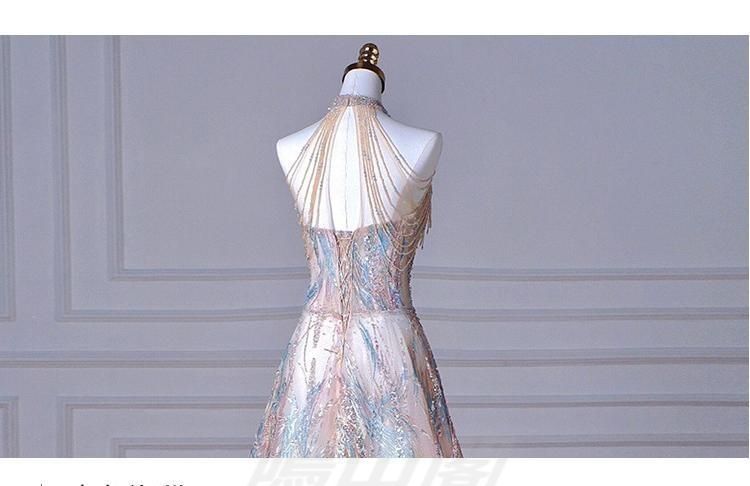 2025年新作のフランス風ハイネックロングドレスです。上品なAラインシルエットに、深Vネックとノースリーブデザインが女性らしさを引き立てます。ウェディング、二次会、披露宴、パーティー、演奏会など幅広くご利用いただけます。