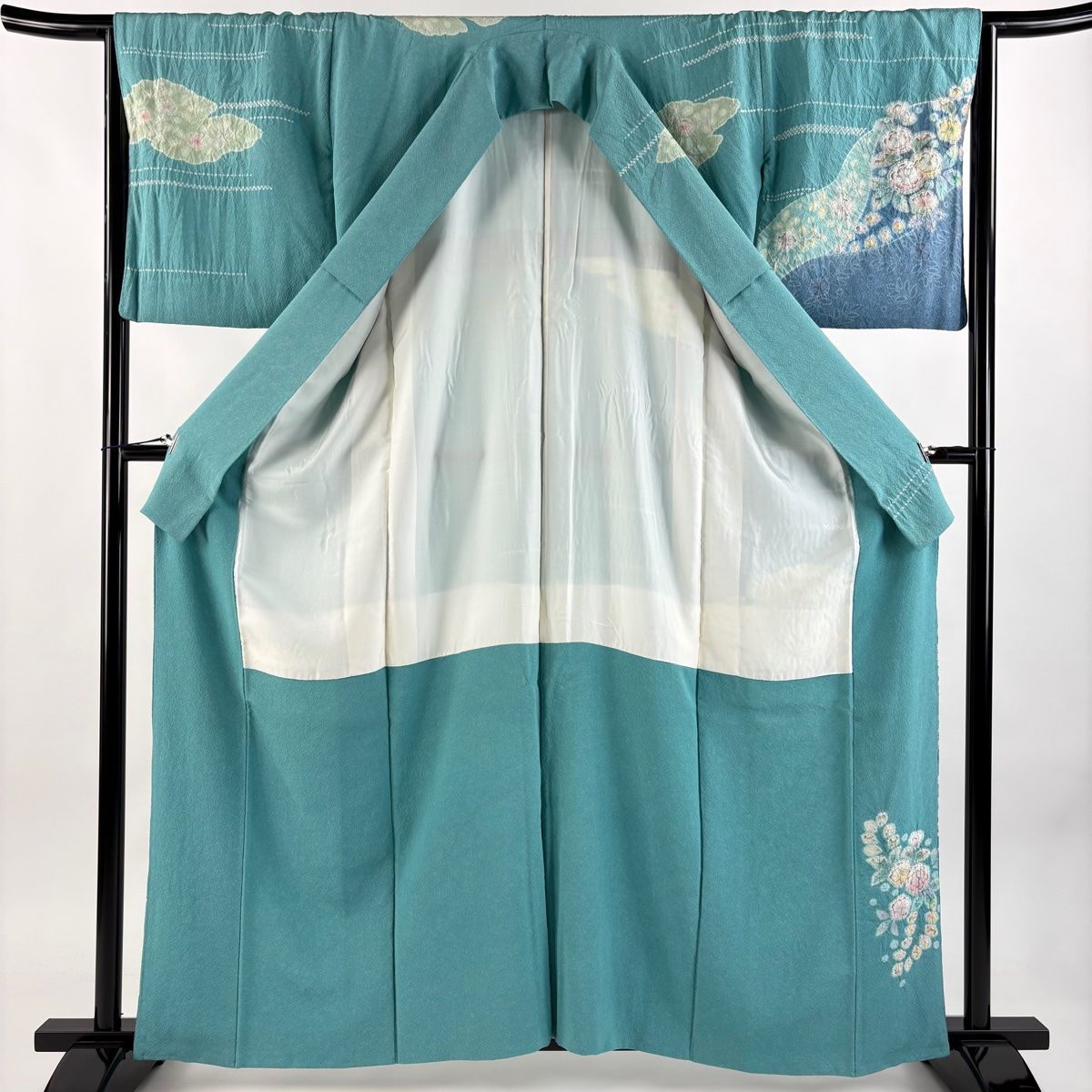 訪問着 身丈161 cm 裄丈66 M 袷 落款 辻が花 雲文 ぼかし 青緑 正絹