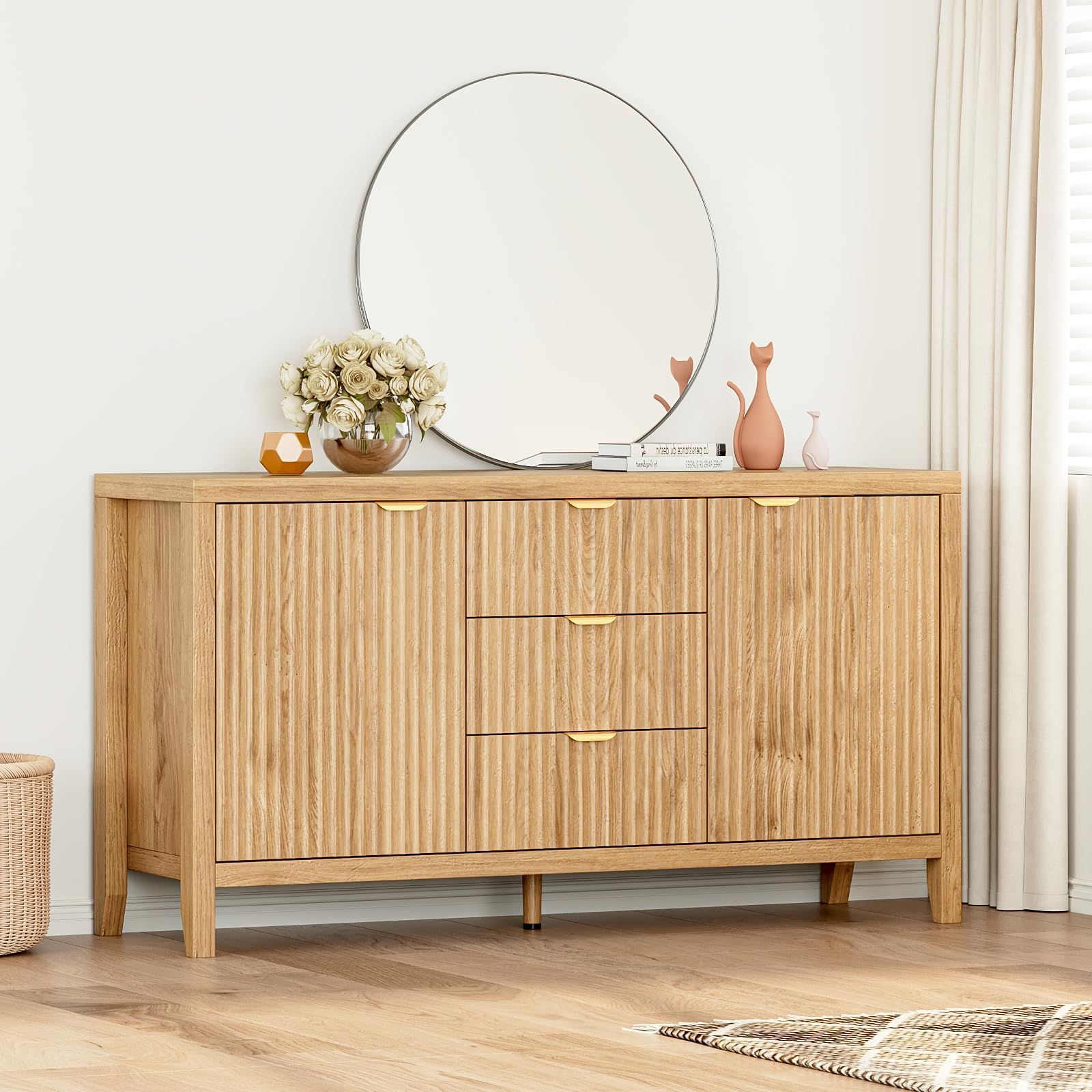 【溝付きデザイン&モダンな取っ手】前面パネルに施された溝付きデザインが立体感と高級感を演出し、どんなインテリアにも美しく調和します。メタル製の取っ手は握りやすく、扉の開閉もスムーズ。スタイリッシュでモダンな印象を与える収納キャビネットです。