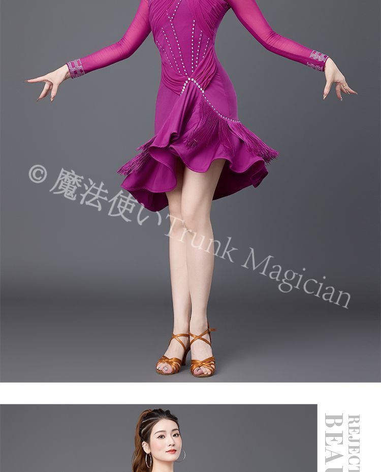 ♥ 社交ダンスドレス ラテンドレス 長袖 ドレス ダンス衣装 フリンジ 競技 オーダーメイド