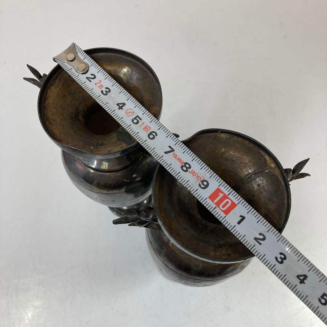 中国清時代シャム銀花器一対 247 g 高さ14.3㎝東Y 5-0306 2 Fトニサ