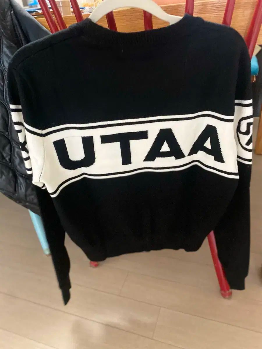 黒いバターンに白いレタリングがポイントのUTAAレディースゴルフニットです。밋밋なフィールドルックにポイントをあげることができます。サイズは写真にあるタグをご参照ください。コメントなければすぐ安全決済していただければ大丈夫です!