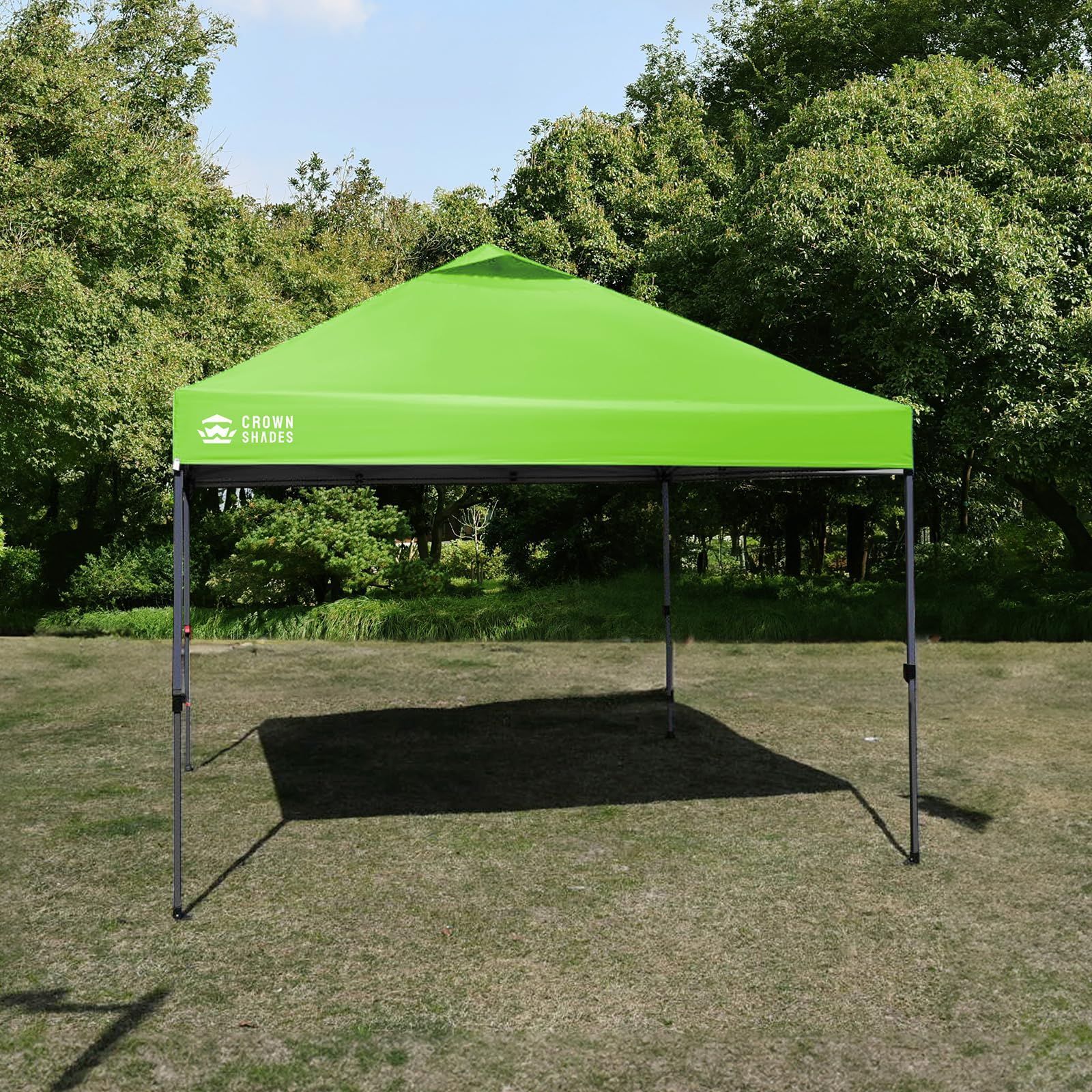 CROWN SHADES ワンタッチタープテント 3mx3m 、センタ-ロック特許タープテント、組み立て簡単、持ち運び便利、シルバーコーティング生地 の収納バッグ、杭8本、ロープ4本、ウェイトバッグ4個 耐久 公園 庭園 BBQ (グリーン)