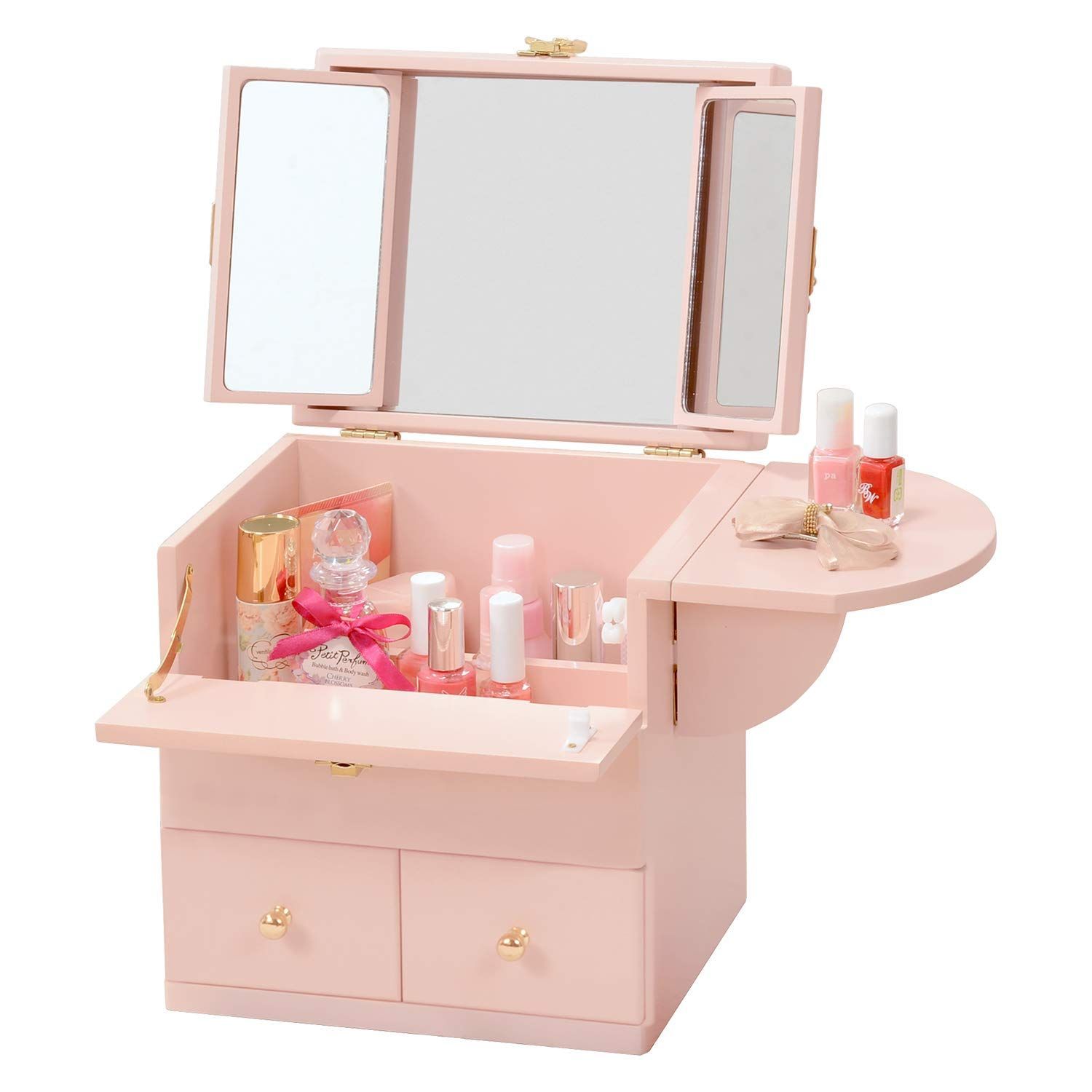 Color:ピンク 萩原 メイクボックス コスメボックス コスメ 化粧品 メイク道具 収納 【コンパクトなのに三面鏡】引き出し 鏡 ミラー 軽量 幅26×奥行19×高さ31 ピンク MUD-6930PI
