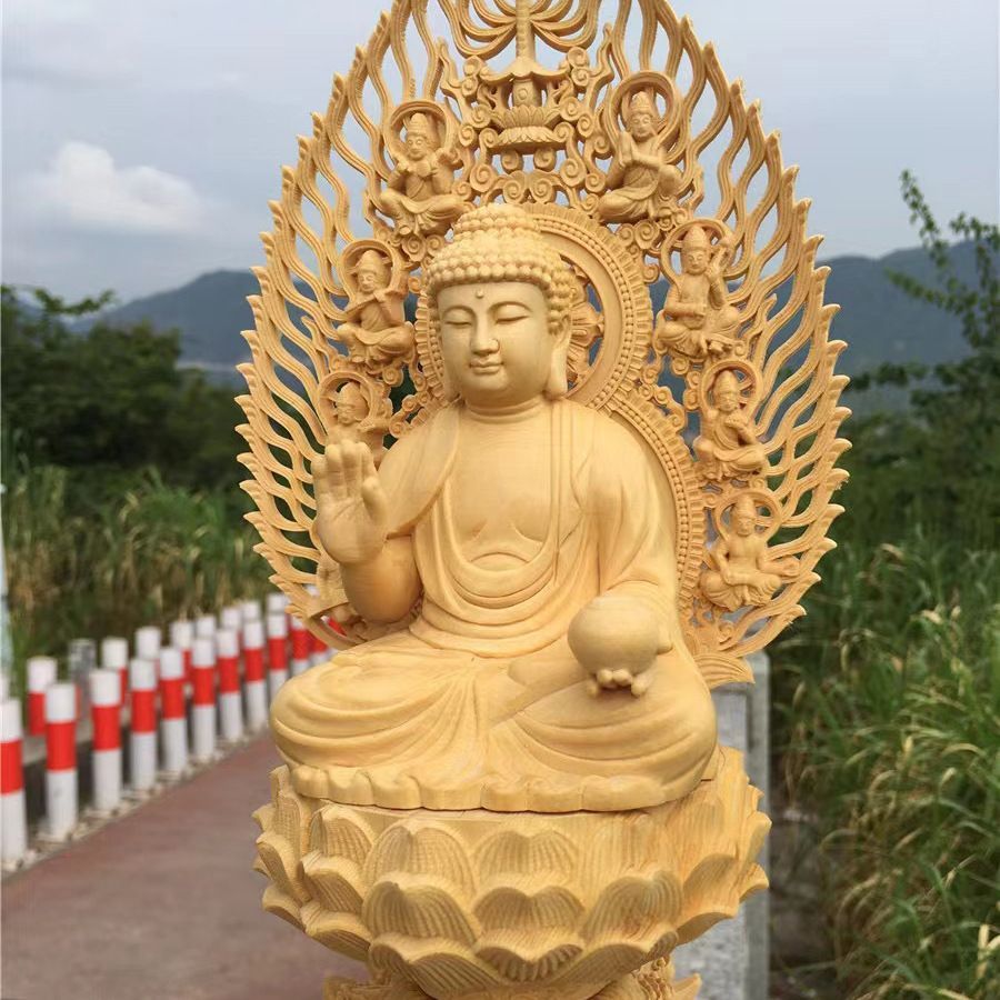薬師如来像 木彫 仏教美術 仏師で仕上げ品 28 cm