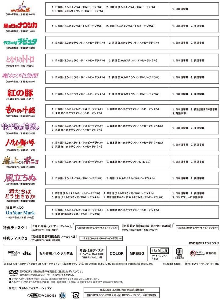 2014年発売の「宮崎駿監督作品集」に最新作と映像特典を追加した増補改訂版。