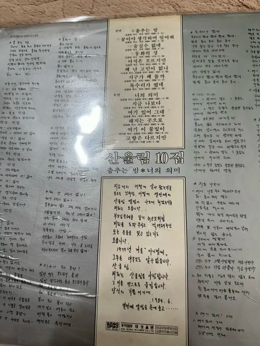 山響(サンウルリム) 10集 - 夜 / 君の意味 (1984 初盤) LP 販売します