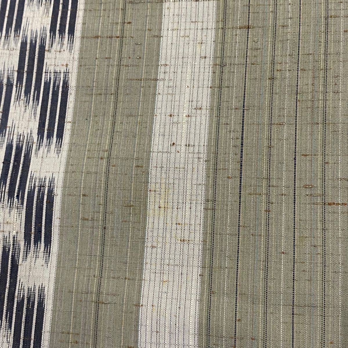紬 身丈162 cm 裄丈66 M 袷 縦縞 幾何学 灰緑 正絹