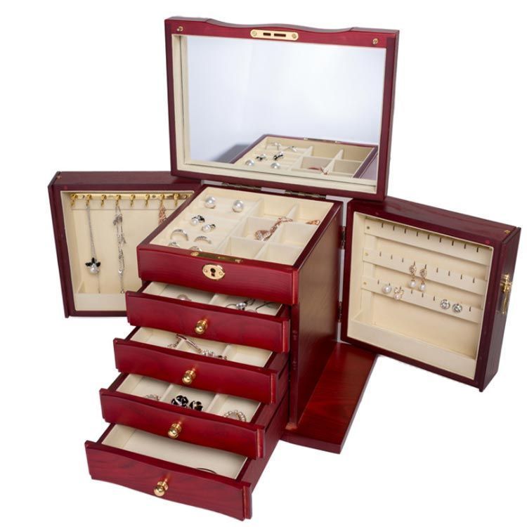ジュエリー ケース 木製 大容量 鏡付き 持ち運び ジュエス 収納家具 引き出し付き 小物入れ ネックレス リング 指輪 収納ボックス 鏡 おしゃれ 小物収納 敬 wxn 02026